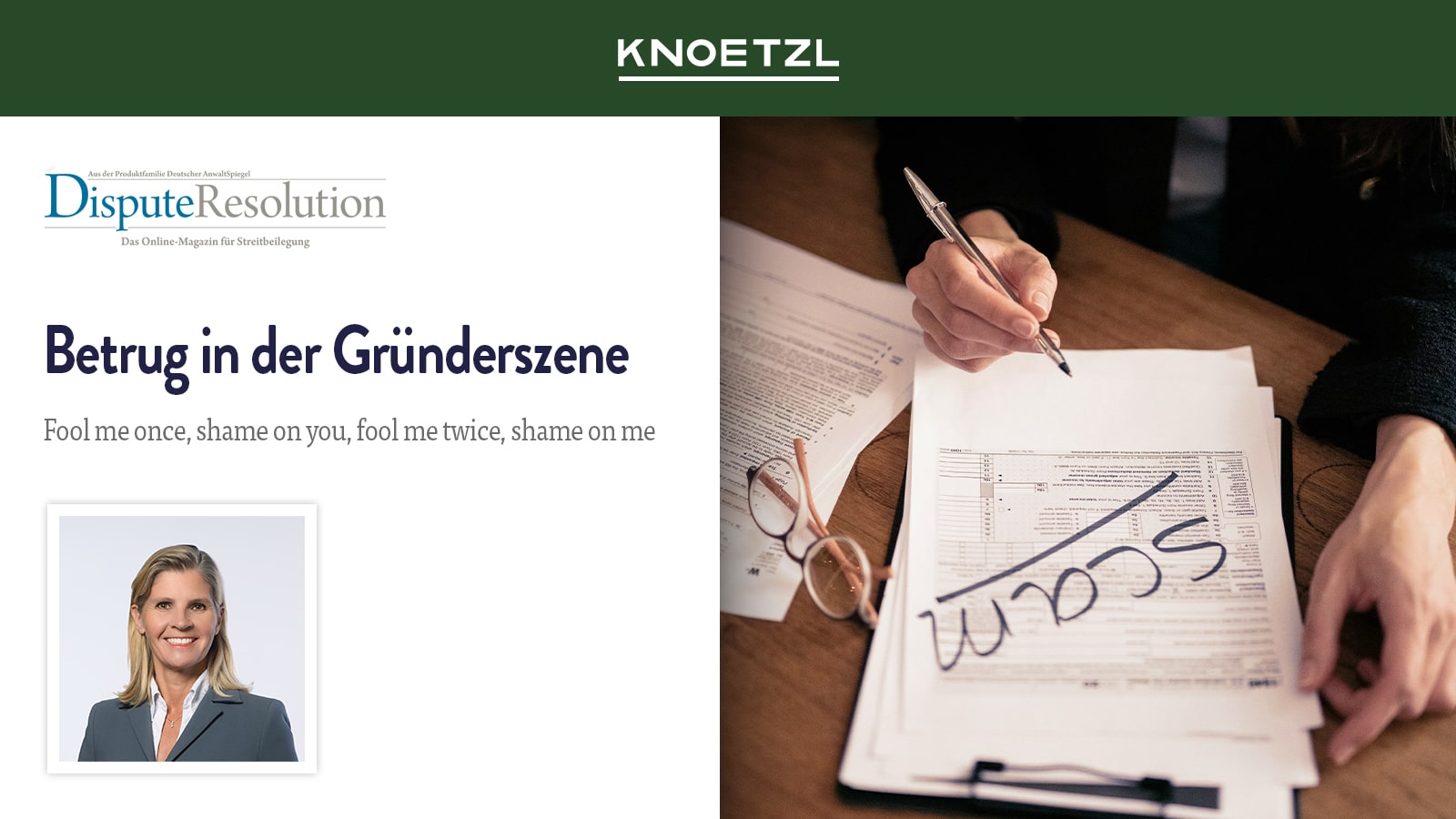 In the latest edition of Dispute Resolution by Deutscher AnwaltSpiegel, Bettina Knoetzl explores the risks entrepreneurs face when they are targeted for fraud, drawing on over 30 years of experience in representing victims of fraud. She shares practical insights and highlights things both business leaders and judges should watch for in fraud scenarios.